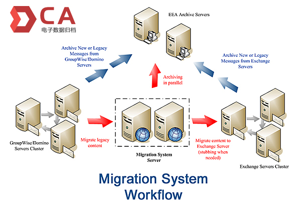 如果电子邮件平台迁移与归档一同进行,启元乾坤科技依然能够提供最佳的迁移和归档体验。传统的邮件迁移产品,邮件迁移和归档项目可以由多个供应商执行,或由一个供应商对不同的项目提供不同的产品。第一供应商的产品执行迁移(从GroupWise或Domino迁移到Exchange),然后第二供应商的产品部署一个归档系统,在集中归档系统中削减电子邮件和文件数据。运用传统的迁移方法,客户必须一步一步地执行,往往需要数月才能完成的第一步(迁移),然后需要基本相同的时间完成第二步(归档),接下来是最后一步(削减),这三级项目将导致长达一年的耗时。不仅会给客户带来两套庞大的软件许可和工程服务成本,通过多个供应商执行这些功能也导致系统兼容性和集成的问题。通常客户会发现在迁移后,某些数据不能有效或准确地由另一个供应商或产品进行归档和存储。